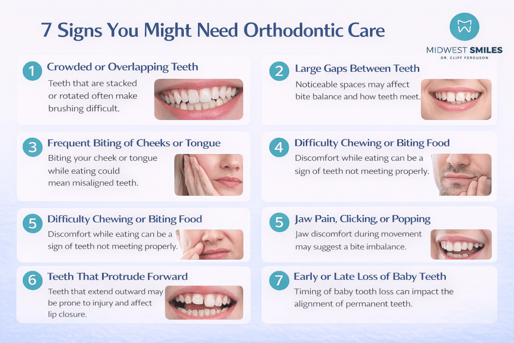 If you or a family member notices any of these warning signs, consider seeking guidance from a professional. The team at Midwest Smiles – Dentist Midwest City provides detailed evaluations to help residents understand their dental alignment and available care options. Taking that first step can help protect your oral health and restore confidence in your smile.